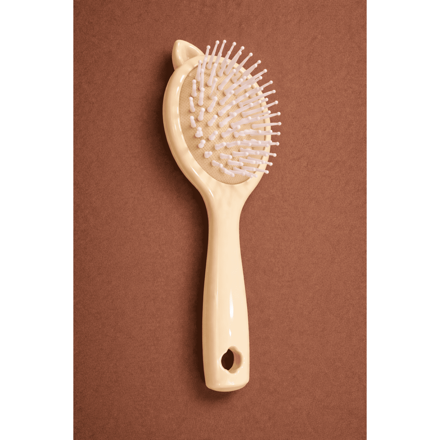 فرشاة شعر لطيفة على شكل قطة لفك تشابك الشعر. شعيرات مرنة ذات أطراف مستديرة تنظف الشعر بلطف، مما يقلل من الشد والتقصف. مناسبة للشعر الجاف أو المبلل وللاستخدام اليومي.
