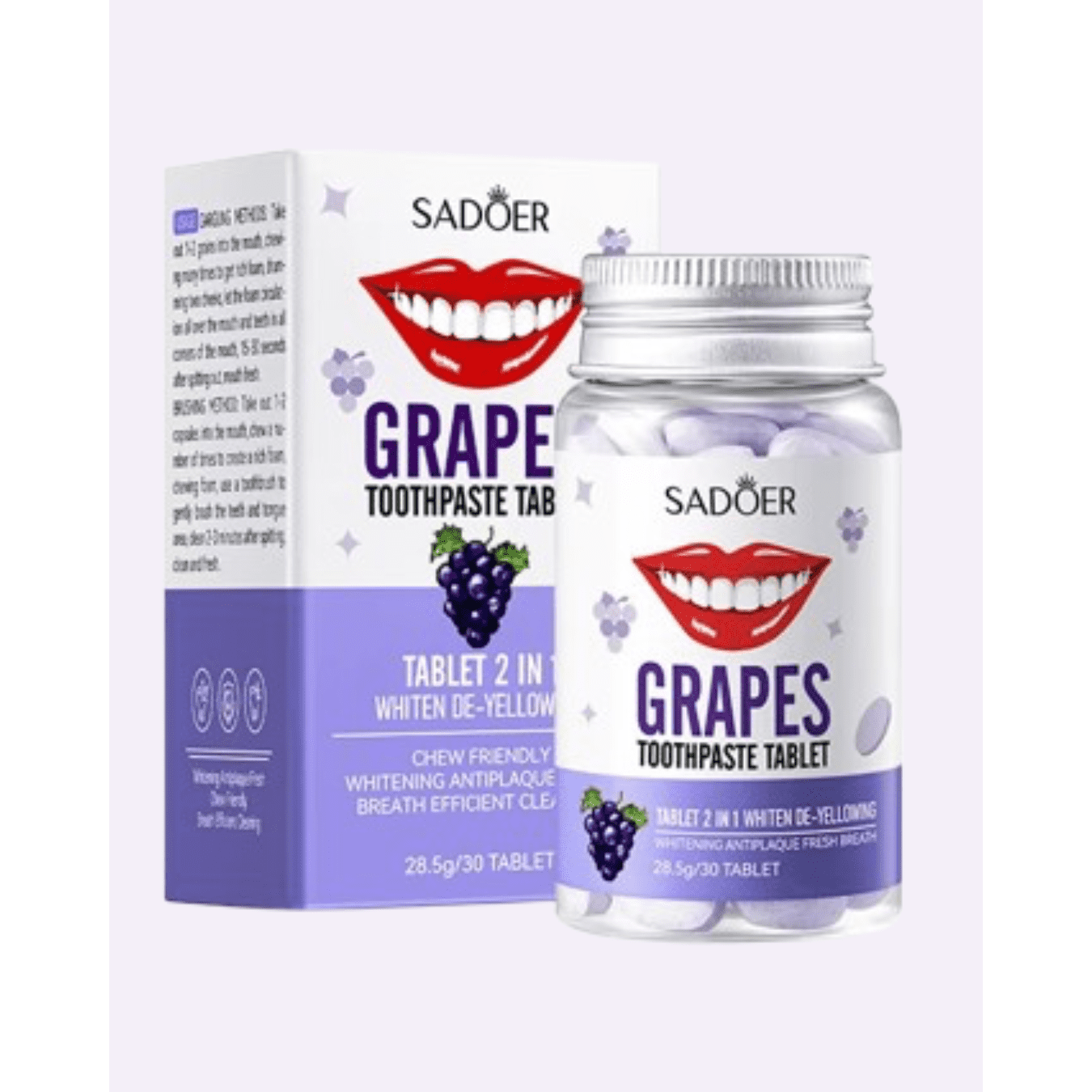 أقراص معجون أسنان سادويير بنكهة العنب، 30 كبسولة